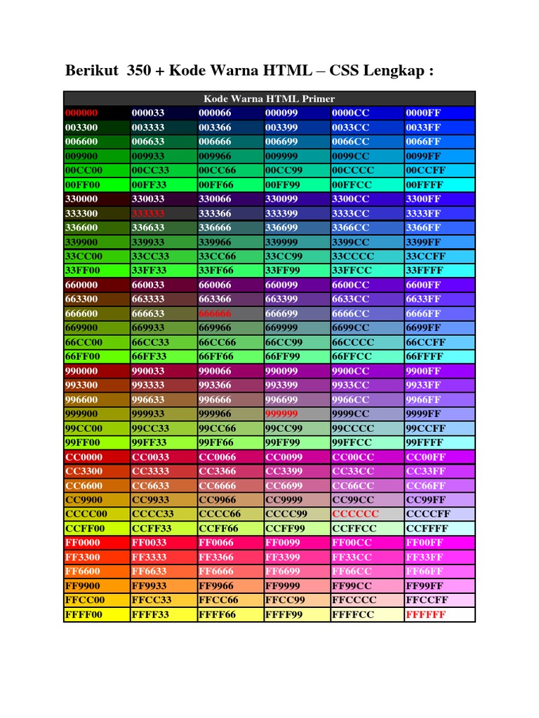 Berikut kode css lengkap berdasarkan berdasarkan kode hexadecimal dan kode rgb.